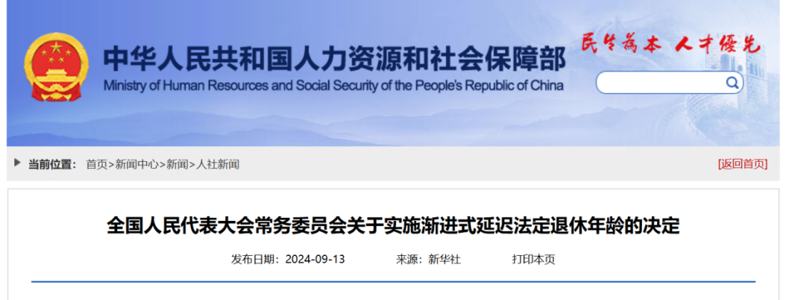 内容全文:https://www.mohrss.gov.cn/SYrlzyhshbzb/dongtaixinwen/buneiyaowen/rsxw/202409/t20240913_525781.html