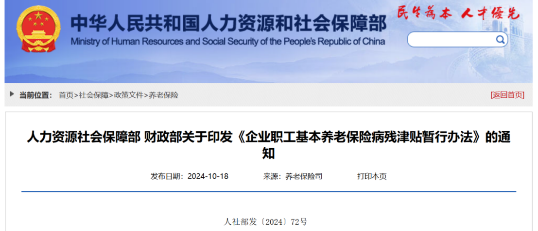 内容全文:https://www.mohrss.gov.cn/SYrlzyhshbzb/shehuibaozhang/zcwj/yanglao/202410/t20241018_527764.html
